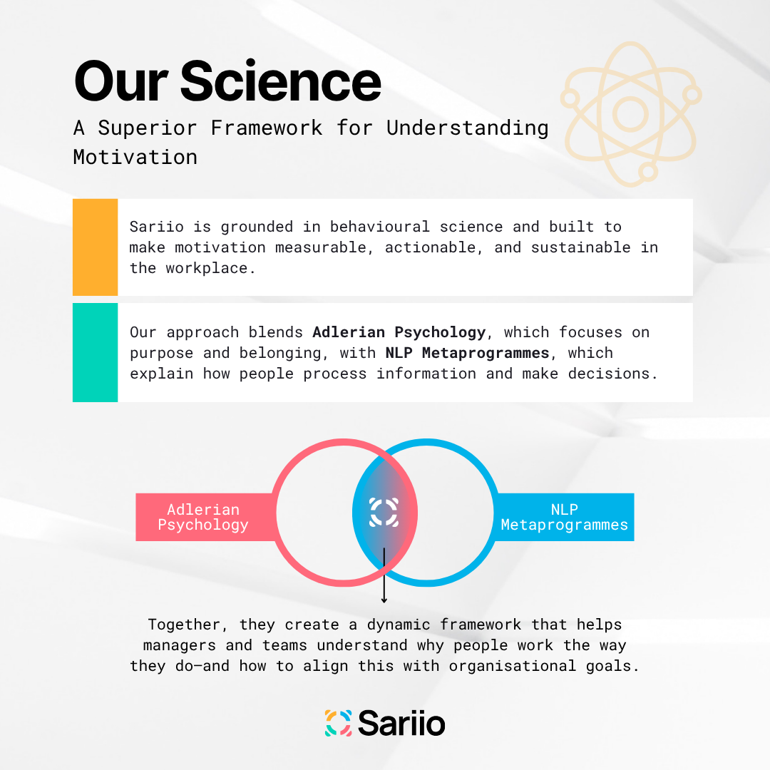 Sariio is grounded in behavioural science and built to make motivation measurable, actionable, and sustainable in the workplace.